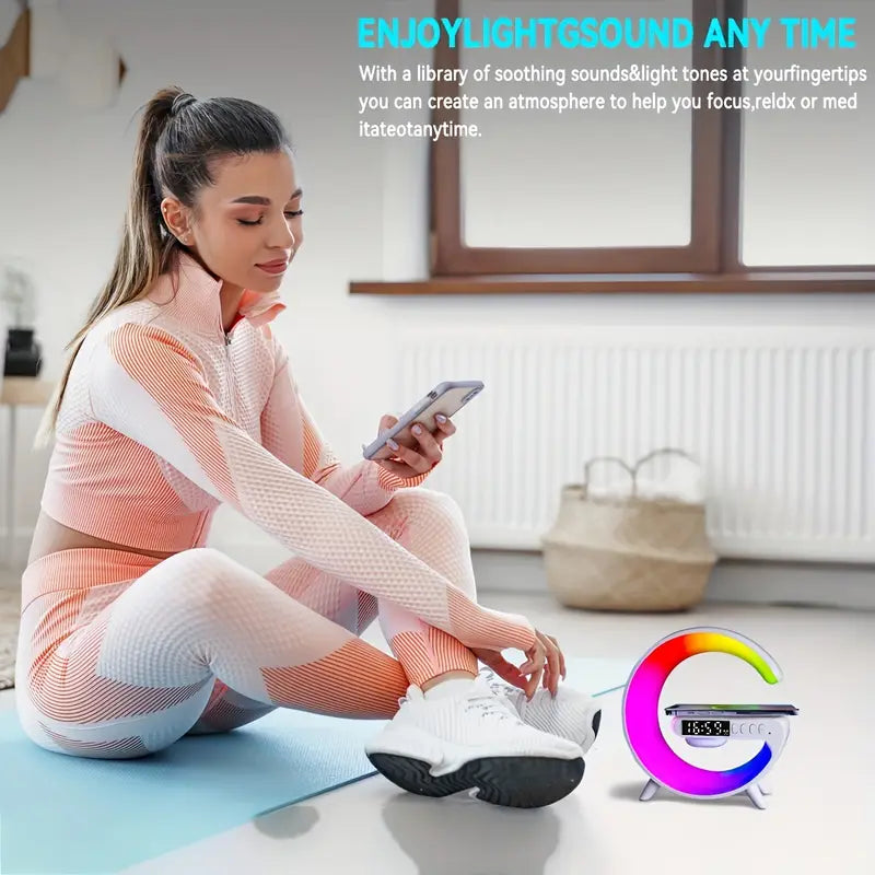 Transform your space with the All-in-One RGB Speaker & Alarm Desk Lamp, a perfect fusion of style and functionality. This versatile device combines a vibrant RGB light strip, an adjustable brightness desk lamp, a high-quality wireless speaker—all in one sleek design. Whether it’s your bedroom, dorm, or workspace, this multifunctional gadget sets the mood, keeps you on schedule, and charges your devices with ease. Ideal as a thoughtful gift or a modern upgrade for your own setup!